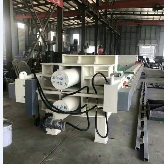 分體式隔膜壓濾機(jī),雙油缸,二次壓榨,電動(dòng)液壓,自動(dòng)保壓,自動(dòng)拉板卸料。 -
